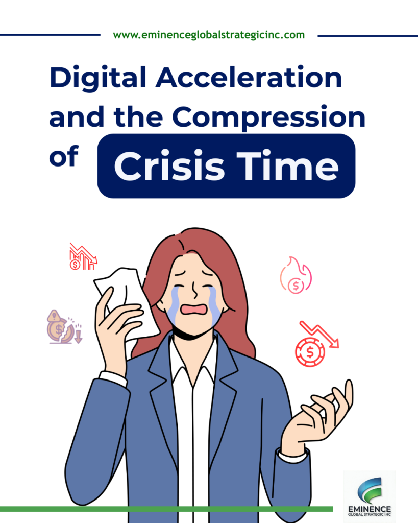 The Eminence Global Strategic Inc. team provides a comprehensive examination of crisis preparedness in the age of digital acceleration: why the stakes have risen so dramatically, what effective crisis architecture requires in the current environment, and how institutions can build the structural resilience needed to contain volatility, protect stakeholder confidence, and emerge from inevitable crises with authority intact.